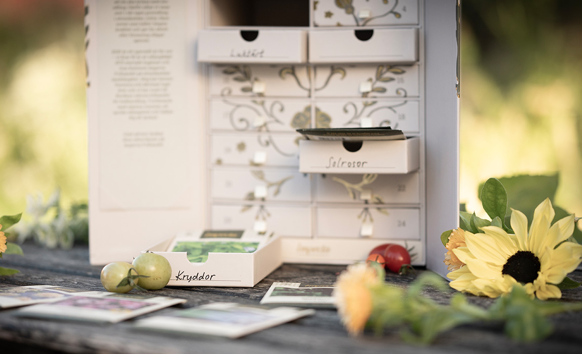 Vi vælger kun sorter, som vi ved giver et godt udbytte, blomstrer smukt, smager godt og har de rette forudsætninger for at trives her. For os handler det ikke bare om spireprocent – det vigtigste for os (og nisserne) er at give dig den bedst mulige start på et nyt, grønt eventyr. Alle frøsorter i kalenderen er prøvedyrket her hos os i Julita i Sverige – i præcis samme type dyrkningsmiljø, som du har derhjemme i haven, i kolonihaven eller på altanen. Vi har dyrket siden 1970’erne og ved, hvad der fungerer i vores nordiske klima.