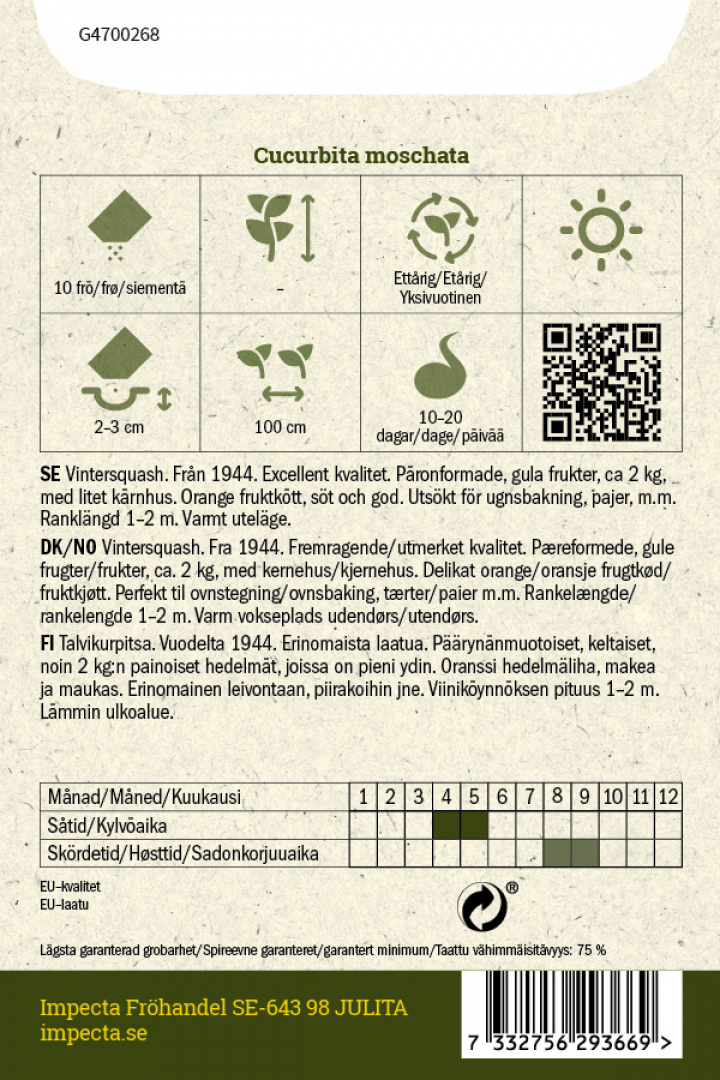Denne udsøgte bønne byder på lange, slanke bælge i en strålende lilla farve. Stangbønnen 'Carminat' er berømt for sin delikate konsistens og en fantastisk smag, der har et let nøddeagtigt strejf. Det unikke udseende er iøjnefaldende både i haven og på tallerkenen. 'Carminat' tilføjer altid elegance og en kulinarisk oplevelse til madretterne - uanset om det er i salaten, suppen eller som tilbehør. Lad den smukke stangbønne sno sig op ad et espalier eller langs en støttepind, og glæd dig til sommerens og efterårets høst af masser af lækre, helt trådfrie bælge.