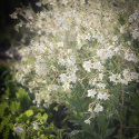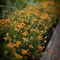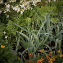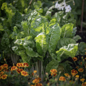 Den klassiske køkkenhave er en dejlig blanding, der stråler som en dugfrisk sommermorgen i gyldengule og sølvhvide toner. I midten knejser slyngende, smørgule voksbønner 'Goldmarie'. Stor prydtobak 'Grandiflora' spreder sin duft vidt og bredt. Bladbeder 'Fordhook Giant' og porrer 'Bleu de Solaise' indtager en fremtrædende plads i bedets midterste lag, mens fløjlsblomster 'Legion of Honour' danner et blomstrende tæppe i bunden. Som skønne udråbstegn stikker smukke, velformede små hoveder af bindsalat 'Little Gem' op.